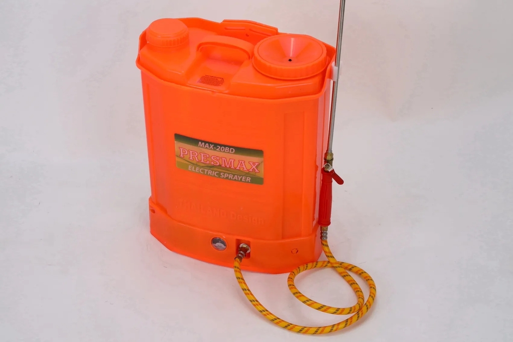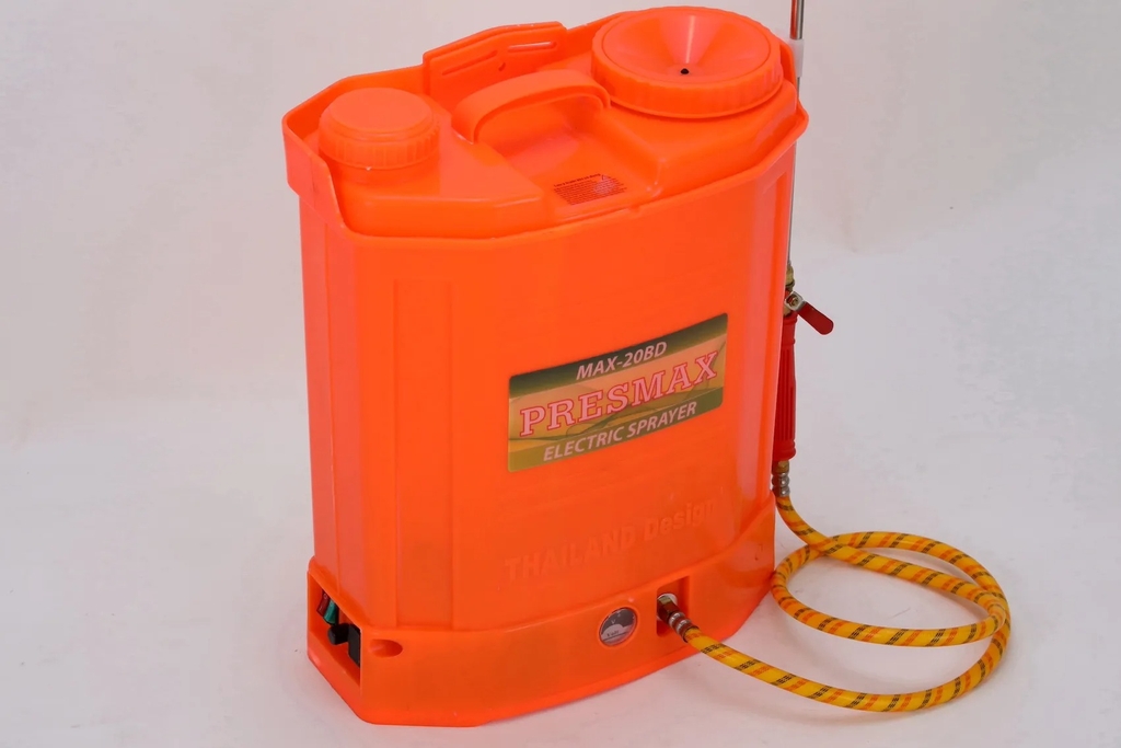 Presmax MAX-20BD (Bơm Đôi): Nặng hơn (do ắc quy lớn), giá cao hơn nhưng phun MẠNH HƠN. Bắt buộc phải chọn dòng này nếu bạn trồng cây ăn trái, cây công nghiệp hoặc cần nối dây phun dài.