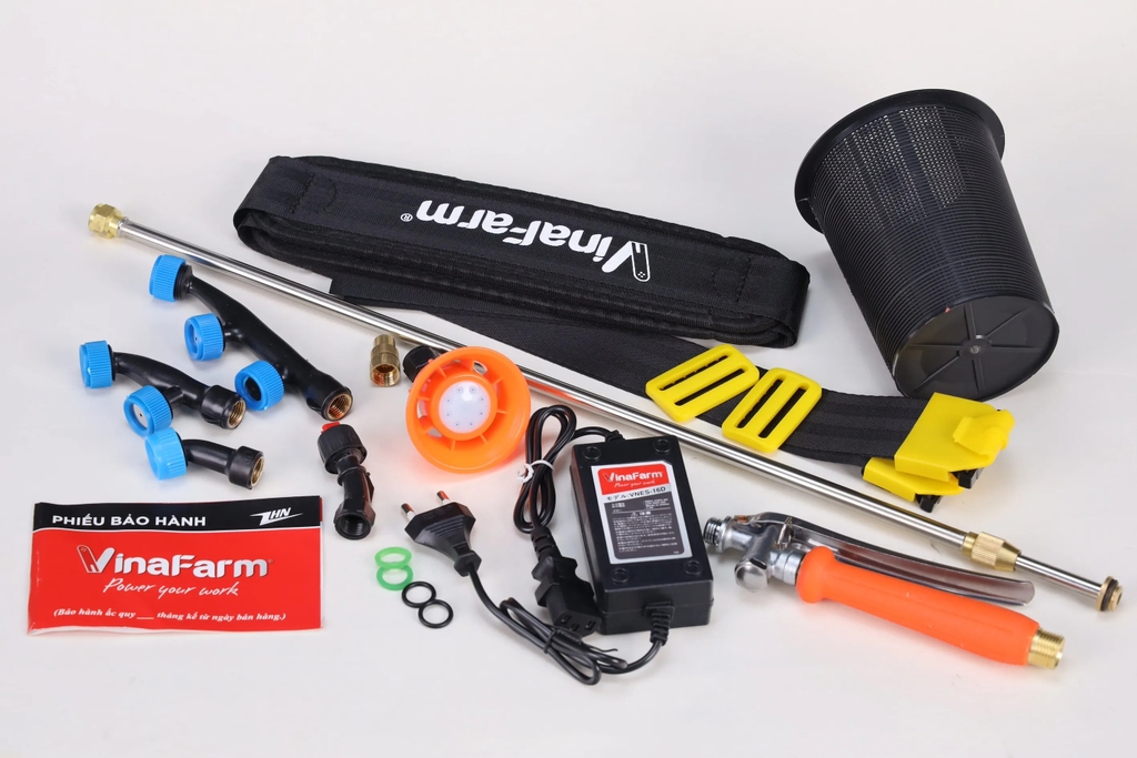 Tiêu chí Thông số chi tiết Thương hiệu VINAFARM Mã sản phẩm VNES-16D Dung tích bình 16 Lít Loại ắc quy 9AH - 12V (Dung lượng lớn) Loại bơm Bơm đơn Áp lực phun 80 PSI Lưu lượng nước 5.0 Lít/phút Màu sắc Đỏ - Xám Tiện ích đặc biệt Khay thay pin nhanh, Ngăn đựng phụ tùng Phụ kiện Cần xịt, Dây áp lực, Tay cầm van bi, Béc phun