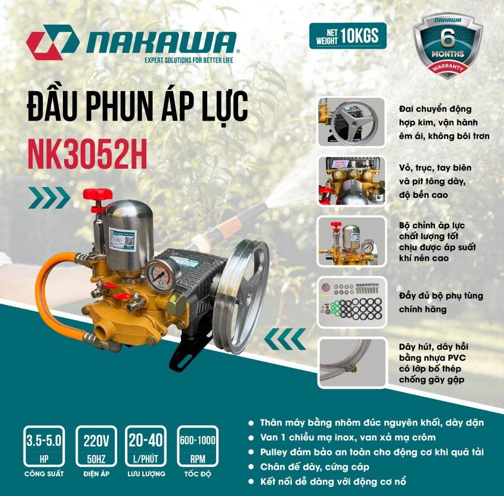 Đầu phun áp lực Nakawa NK3052H là sản phẩm mới của thương hiệu Nakawa được sản xuất theo công nghệ Nhật Bản. Máy có hiệu suất làm việc mạnh mẽ hơn và áp lực nước lớn hơn. Giúp bạn dễ dàng xử lý mọi vết bám bẩn trên xe hoặc tường, sân, vườn, v.v. Sản phẩm có nhiều ưu điểm và tính năng vượt trội, mang lại nhiều lợi ích và tiện lợi khi sử dụng.