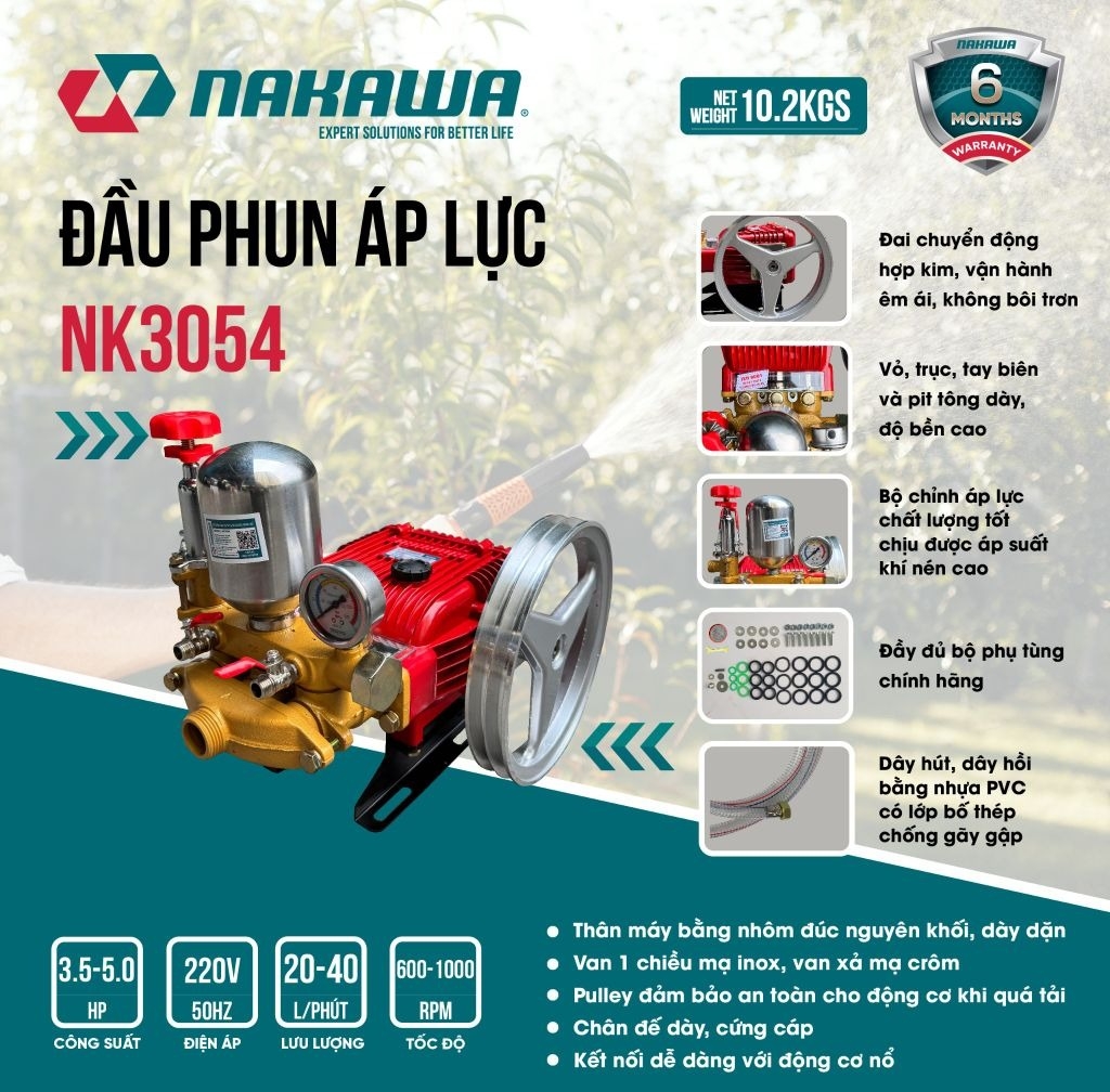 Đầu phun áp lực Nakawa NK3054 là sản phẩm mới của thương hiệu Nakawa được sản xuất theo công nghệ Nhật Bản. Máy có hiệu suất làm việc mạnh mẽ hơn và áp lực nước lớn hơn. Giúp bạn dễ dàng xử lý mọi vết bám bẩn trên xe hoặc tường, sân, vườn, v.v. Sản phẩm có nhiều ưu điểm và tính năng vượt trội, mang lại nhiều lợi ích và tiện lợi khi sử dụng.