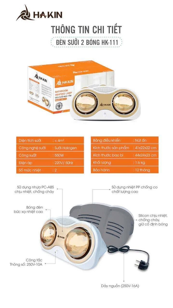 Mùa đông lạnh giá khiến việc tắm rửa trở nên ám ảnh, đặc biệt với trẻ nhỏ và người lớn tuổi. Đèn sưởi 2 bóng Hakin chính là vị cứu tinh, mang lại hơi ấm tức thì, giúp bạn và gia đình vượt qua những ngày rét buốt một cách thoải mái và an toàn.