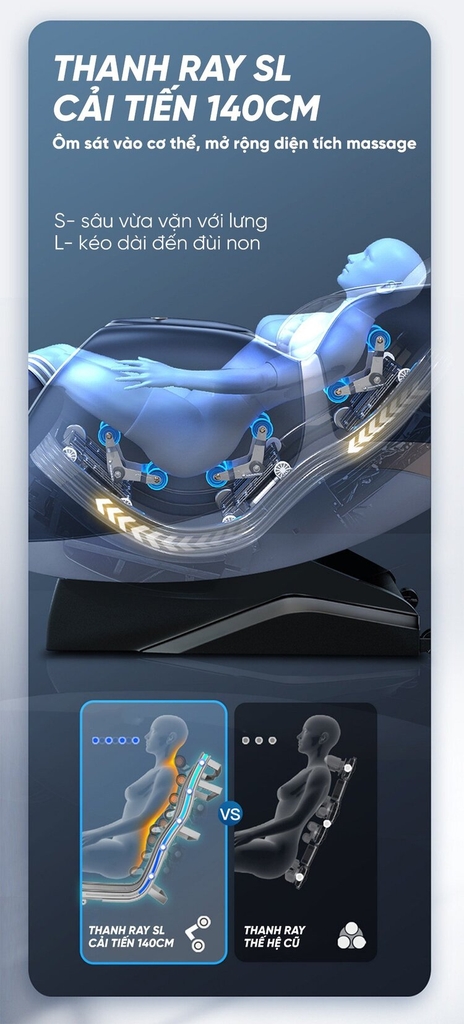 1.2. Hệ thống thanh ray SL cải tiến, massage “trọn vẹn” hiệu quả gấp đôi