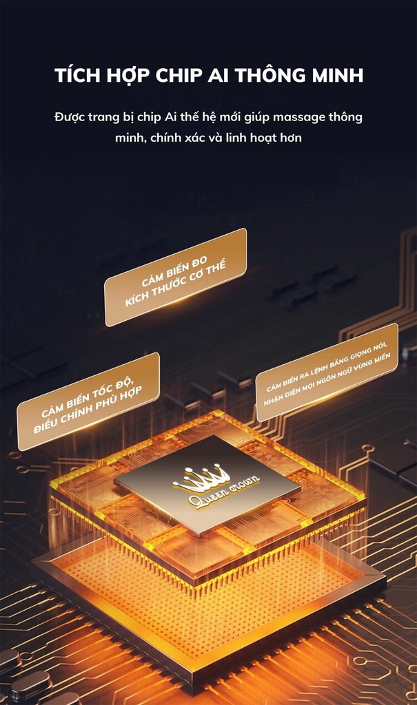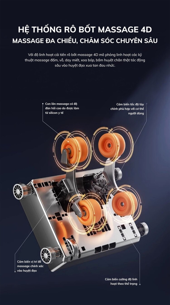 - Tự động dò tìm huyệt đạo: Được tích hợp trí tuệ nhân tạo Ai quét toàn bộ cơ thể, dò tìm huyệt đạo để massage chính xác từng điểm đau nhức.