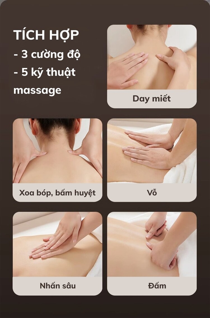 Đây là một cải tiến vượt bậc giúp người dùng tận hưởng cảm giác massage thư giãn vô cùng chân thực như ở các spa chuyên nghiệp. Từng động tác đấm, vỗ, miết, xoa bóp, bấm huyệt được thực hiện thuần thục, nhịp nhàng mang đến cảm giác dễ chịu, êm ái tối đa.