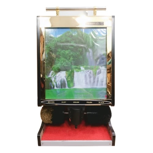 Những dòng máy đánh giày cao cấp chuyên dụng trong khách sạn, nhà hàng, quán cà phê, tòa nhà cao ốc, chung cư, villa, resort,...đều có điểm chung là công suất máy mạnh mẽ, hệ thống chổi đánh giày chuyên nghiệp, đặc biệt là kiểu dáng thiết kế sang trọng với mặt trước bằng kính được trang bị tranh sơn thủy cực kì bắt mắt.