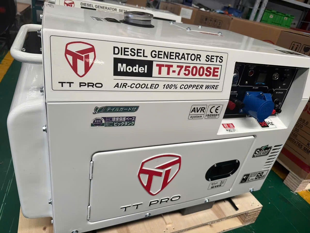Máy Phát Điện 6Kw Chạy Dầu TTPRO TT-7500SE– Máy Phát Điện 6Kw Chạy Dầu TTPRO TT-7500SE cách âm. Được sản xuất theo công nghệ hiện đại của Nhật Bản. Sử dụng động cơ diesel với lớp cách âm siêu êm giúp máy hoạt động êm ái. Không gây ảnh hưởng đến mọi người xung quanh. Đặc biệt máy được trang bị bộ điều khiển từ xa vô cùng tiện lợi trong quá trình sử dụng. – Máy Phát Điện Chạy Dầu 6Kw TTPRO TT-7500SE. Có thể cung cấp điện cho các thiết bị sử dụng trong gia đình như đèn chiếu sáng, quạt gió, nồi cơm, tivi, tủ lạnh, điều hòa. – Máy phát điện gia đình TTPRO TT-7500SE được thiết kế với khung chịu lực chắc chắn. Chân có bánh xe và tay kéo thuận tiện trong quá trình di chuyển. – Máy được thiết kế hệ thống tự động điều chỉnh điện áp AVR. Với chức năng đảm bảo điện áp ra luôn ổn định và an toàn cho các thiết bị được cấp điện. Cấu Hình Máy Phát Điện 6Kw TTPRO TT-7500SE– Động cơ diesel WM 188Fa mạnh mẽ với công suất cực đại 6.5kw. Máy chạy ổn định với dòng điện 220V, tần suất 50Hz phù hợp với các thiết bị điện được sử dụng trong nước. – Dung tích bình nhiên liệu 15L và mức tiêu hao nhiên liệu ≤275g/kw giờ. Khi đổ đầy bình nhiên liệu có thể đủ cho gần 10 giờ hoạt động của máy trước khi phải tiếp thêm nhiên liệu. – Hệ thống khởi động đề điện, dễ dàng thao tác trong quá trình sử dụng, tiện lợi khi bảo dưỡng. – Sản xuất đồng bộ theo dây chuyền và công nghệ tiên tiến giúp tiết kiệm nhiên liệu và vận hành ổn định. – Nút điều chỉnh và nơi gắn dây điện thuận tiện trong vận hành và dễ dàng thao tác. Những lưu ý khi sử dụng máy phát điện– Thường xuyên kiểm tra tình trạng nhiên liệu, dầu nhớt và khoang làm mát đồng thời tuân thủ việc bảo trì bảo dưỡng và vệ sinh định kỳ. – Làm theo hướng dẫn sử dụng và các chú ý từ nhà sản xuất và đơn vị phân phối trong quá trình vận hành. – Bảo quản và lắp đặt máy phát điện ở vị trí khô ráo thoáng mát và tuyệt đối không khởi động máy trong trời mưa hoặc trong điều kiện không gian ẩm ướt. – Không tiếp nhiên liệu trong lúc máy đang hoạt động hoặc khi máy đang nóng tránh cháy nổ. – Khởi động máy mỗi 2 tuần 1 lần nếu không sử dụng thường xuyên. |