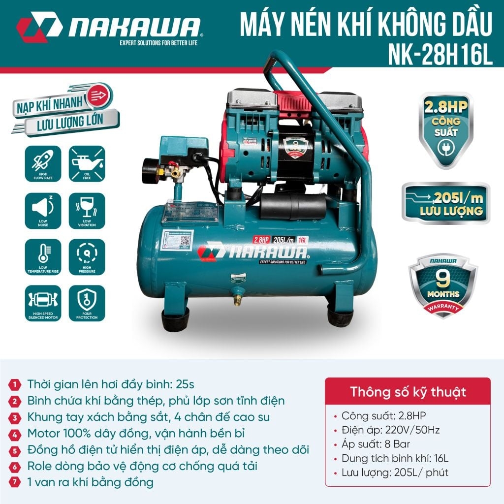 Đây là dòng máy nén khí với thiết kế cải tiến vượt trội, vỏ motor kiểu mới giúp tối ưu hiệu suất vận hành. Bình chứa làm từ thép chắc chắn, phủ lớp sơn xanh tĩnh điện bền đẹp theo thời gian.