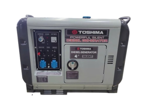– Máy Phát Điện Chạy Dầu 5Kw Toshima T6800ETKS Siêu Cách Âm. Có thể cung cấp điện cho các thiết bị sử dụng trong gia đình như đèn chiếu sáng, quạt gió, nồi cơm, tivi, tủ lạnh, điều hòa.