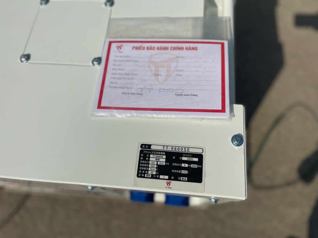 Với mã động cơ 195 FC giúp máy phát điện TT-9800SE ra đủ công suất 9kw, không giống như các mã động cơ thông thường khác ở trên thị trường.