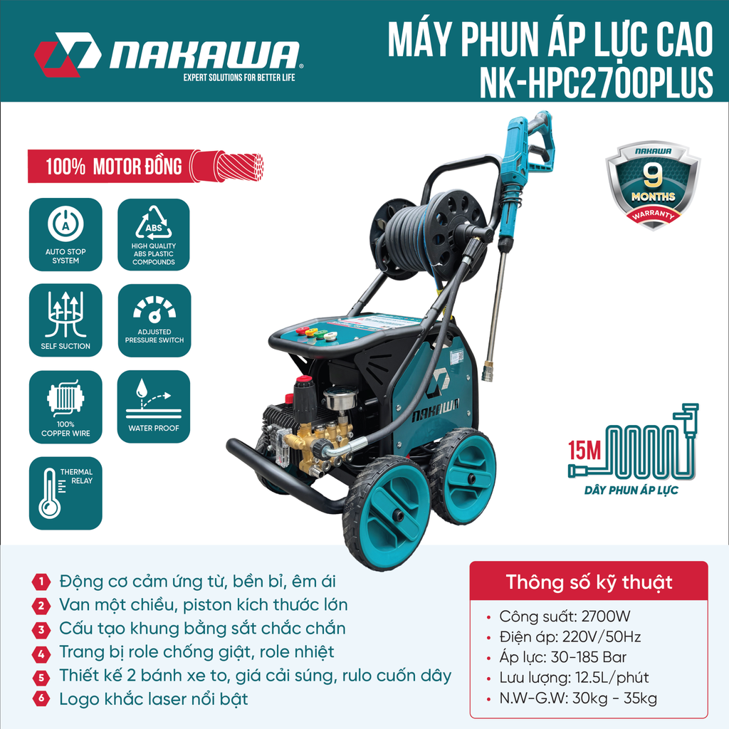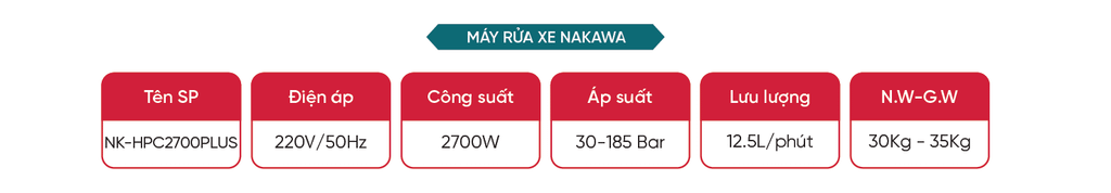 1. THÔNG SỐ KỸ THUẬT CỦA MÁY PHUN ÁP LỰC NAKAWA NK-HPC2700PLUS
