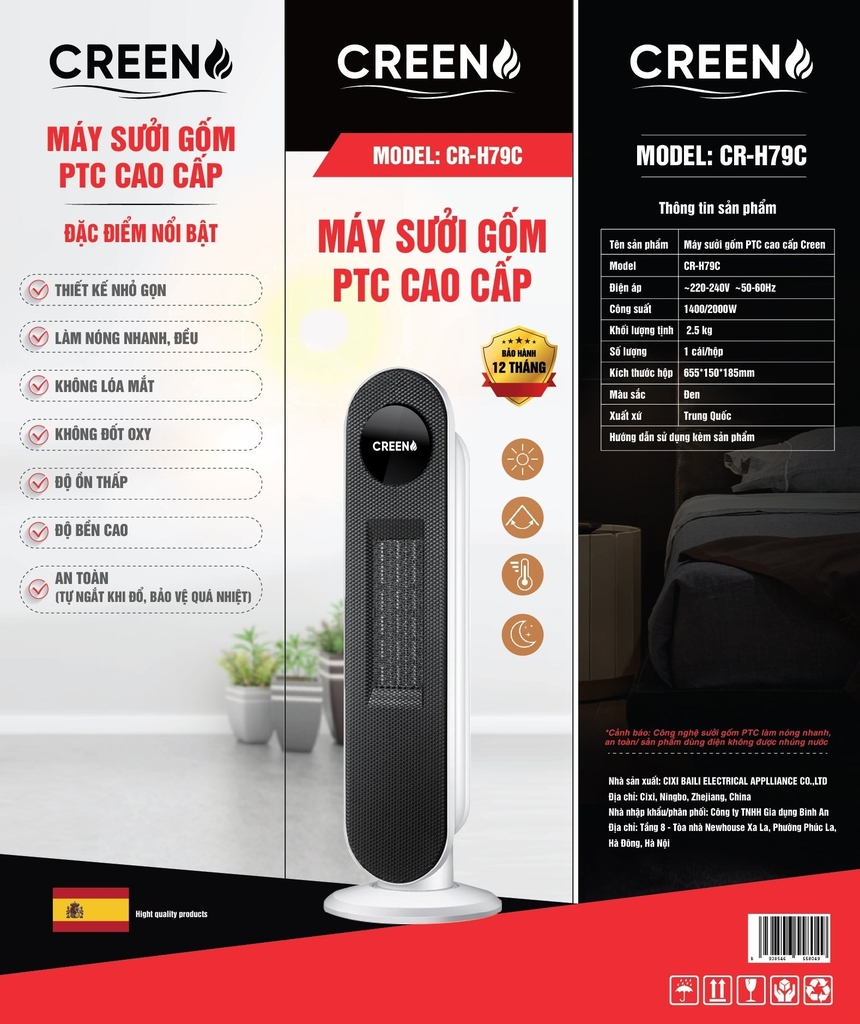 Máy sưởi gốm cao cấp CREEN CR-H79C là dòng sưởi ấm vượt trội với các tinh năng đặc biệt sau