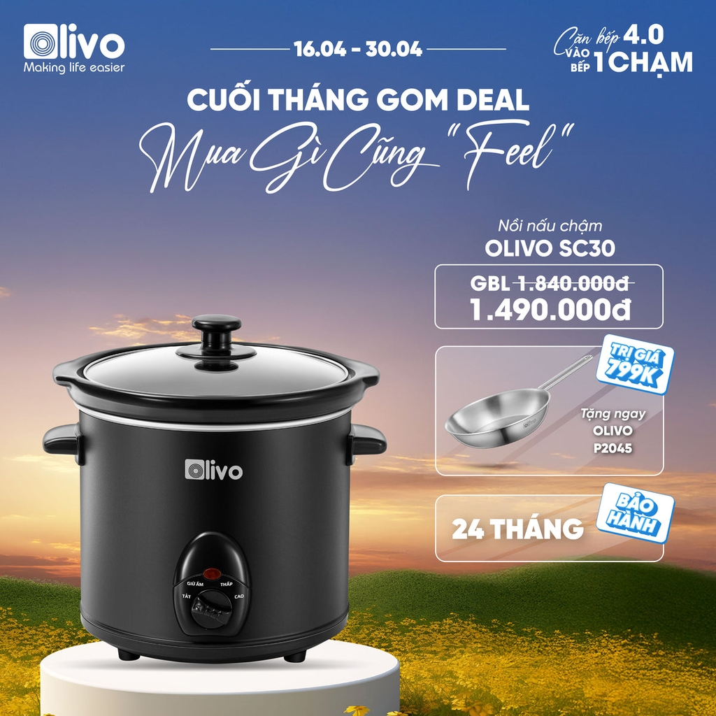 - Khi nhịp sống hiện đại khiến căn bếp trở thành nơi cần nhiều “trợ thủ” hơn là “thử thách”, nồi nấu chậm OLIVO SC25 và SC30 chính là câu trả lời tinh gọn nhưng đầy tinh tế. Không ồn ào, không phô trương – chỉ lặng lẽ mang đến những bữa ăn tròn vị, giàu dinh dưỡng và an tâm tuyệt đối.