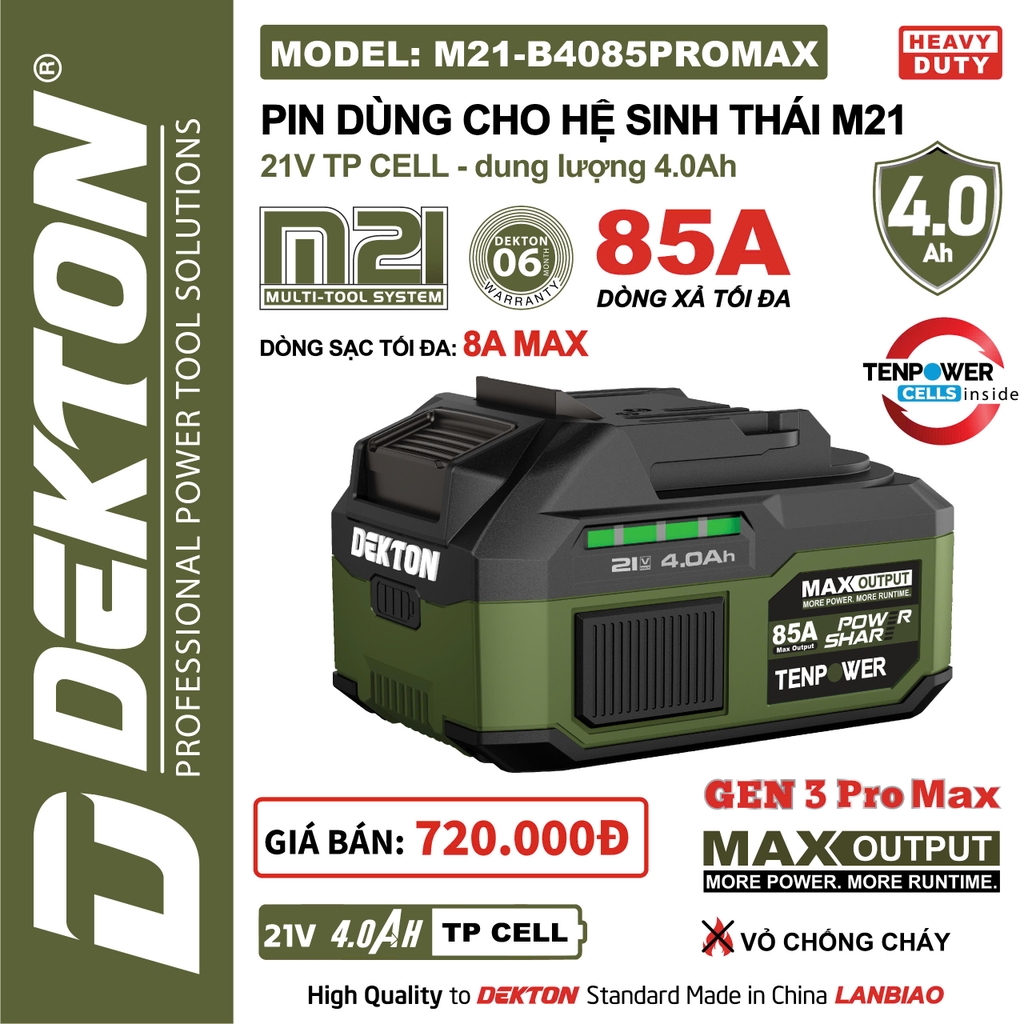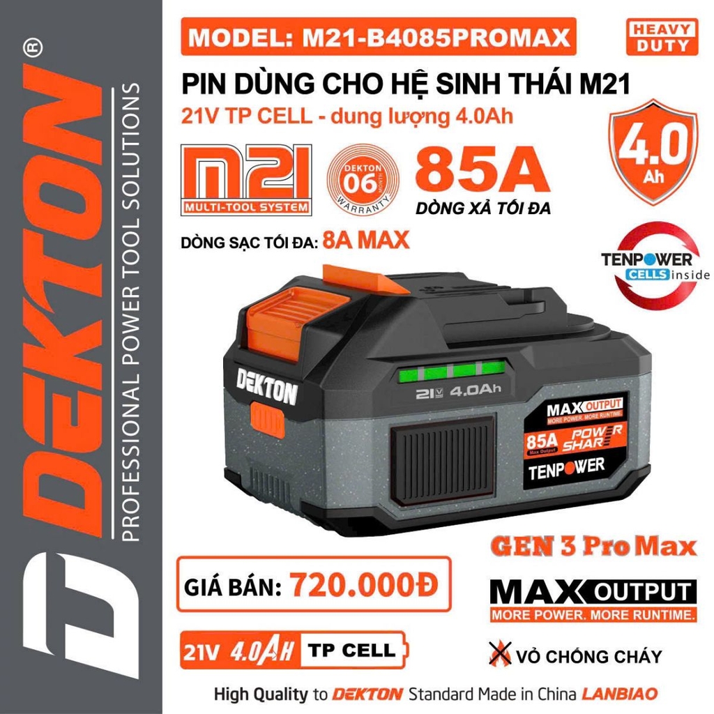 - Tên sản phẩm: Pin Dekton 21V 4.0Ah (ProMax) - M21-B4085PROMAX
