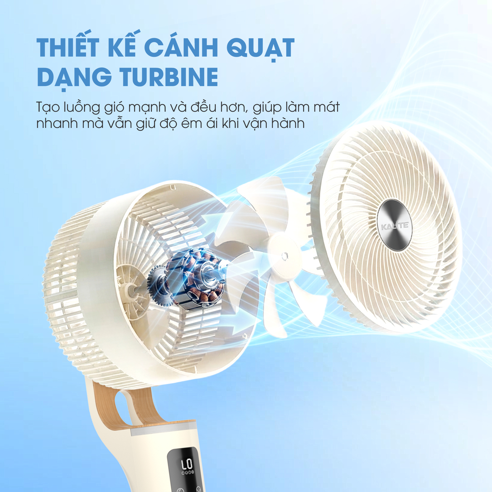 Sở hữu thiết kế cánh quạt dạng Turbine tân tiến, Kalite Talkfan KSA326 có khả năng tạo ra luồng gió xoắn tập trung với sức mạnh vượt trội, cho phạm vi làm mát lên tới 12m. Tính năng này mang lại lợi ích làm mát nhanh và sâu cho cả những không gian rộng lớn, đảm bảo luồng không khí được lưu thông liên tục và đồng đều. Dù bạn ngồi ở bất cứ đâu trong phòng, cảm giác sảng khoái và mát lạnh vẫn luôn hiện hữu tức thì.