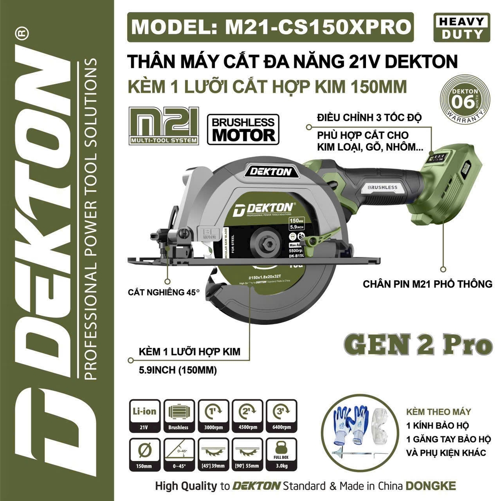 Đường kính lưỡi tối đa: 150mm (Kèm 1 lưỡi cắt hợp kim 150mm)